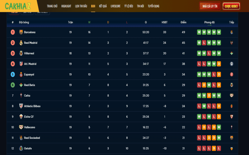 Không kém phần hấp dẫn, La Liga mang đến bức tranh đối lập giữa tính chiến thuật chặt chẽ và kỹ thuật cá nhân tinh tế. Bảng xếp hạng giải đấu này tại trang web không chỉ phản ánh cuộc đua song mã quen thuộc, mà còn làm nổi bật nhóm đội đang vươn mình cạnh tranh vé châu Âu và những tập thể phải gồng mình trong cuộc chiến sinh tồn.